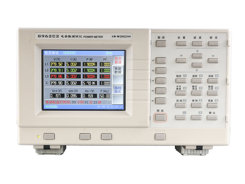 本測量儀可測量被測系統(tǒng)穩(wěn)態(tài)和瞬態(tài)的電壓、電流、功率、功率因數(shù)、頻率、電能累計(jì)等參數(shù),測量頻率范圍為5~800Hz交流信號(hào)。